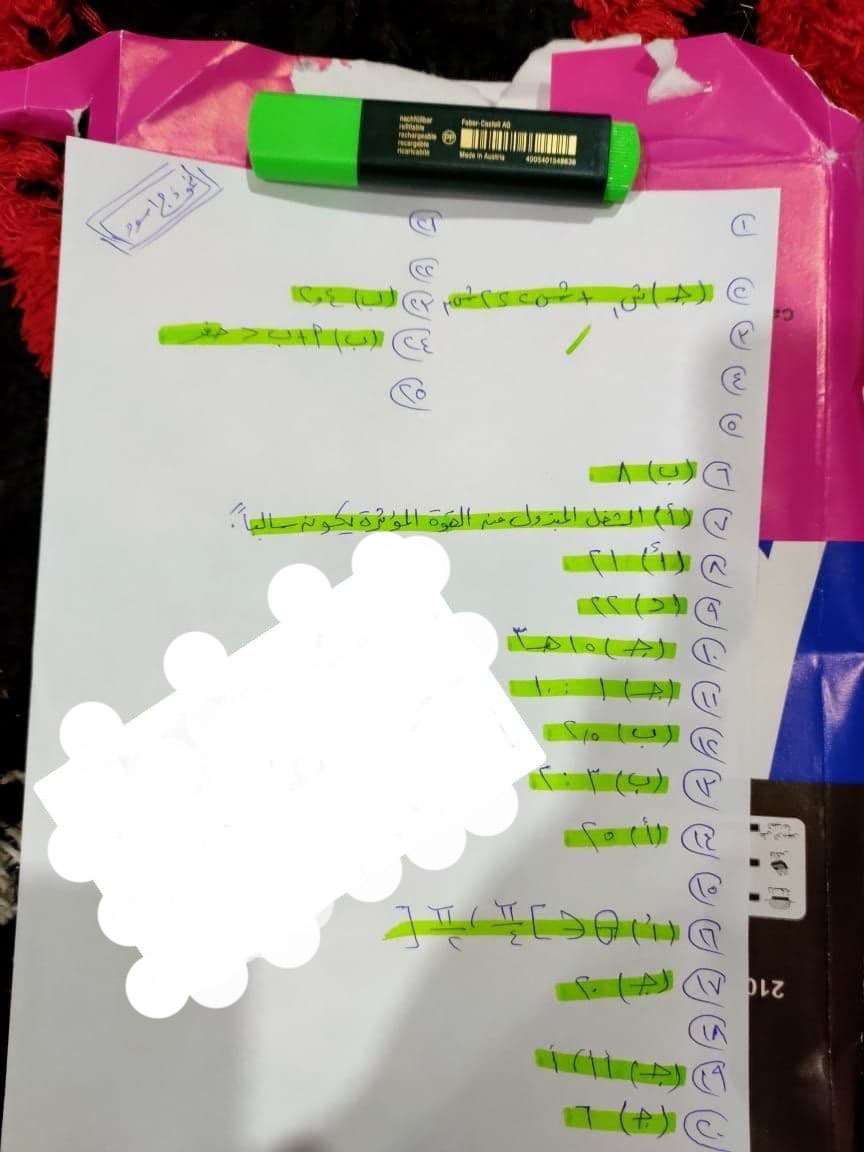 - الاجابات محلولة في النموذج الرسمي لضمان اعلي الدرجات.